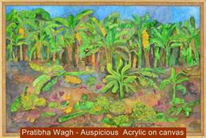 An artist of any discipline first sees the idea manifest in his mind and then begins his expression of it. Mrs. Pratibha Wagh celebrates nature in her mind before giving it a form to be enjoyed by its beholders. Her paintings of nature are resplendent with the rich influences of Madhubani, Chitrakathi and Indian miniature paintings. The resultant style inherently demands a rather difficult merger of detailing and precision while the size of her canvas doesn’t allow her the liberty of being artistically vague, it does insist upon sharp precision of strokes that are at once bold and light. Mrs. Wagh manages this tightrope walk with consummate ease. Her paintings give you a distinctly joyous experience of a dreamlike state, and their old world. The message in her paintings is loud and clear. Unless man loves and respects nature, he has no right to its beauty and benevolence.
