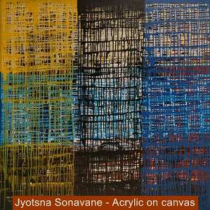 Jyotsna Sonavane describes her artistic journey as an inward exploration for outward expressions. Her abstract language of lines and colors captures the evolving compositions that gain new meanings over time. Inspired by nature, Sonavane’s paintings mimic the organic beauty of stone, petrified wood, and flowing rainwater. The emotional depth of her work is conveyed through the movement of brushwork and layered colors, creating a rich history within each piece.