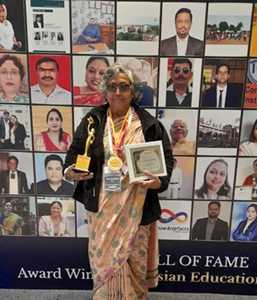 Life time achievements Indian Iconic Award,in Delhi , Ashoka Award and Nari Samman in Education From Iconic Peace Award Council. International Mahatma Gandhi Noble Peace Award,Asian Education Award as Best Edtech Of the year.
